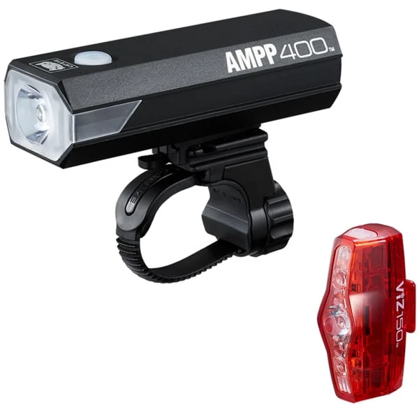 Le AMPP 400 & VIZ 150 SET de Cateye et un ensemble comprenant une lampe de vélo et un feu arrière de sécurité. Lorsque vous partirez en route pour une nouvelle aventure, vous apprécierez ce set que vous pourrez dégainer lorsque la luminosité décline.