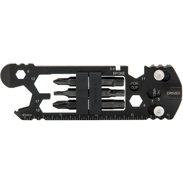 Construite en acier inoxydable de qualité revêtu de titane noir, cet outil multi-fonctions unique en son genre mesure seulement 12 mm d’épaisseur à l’endroit le plus épais, ce qui lui permet d’être facilement emmener partout, tout en conservant le maximum de fonctionnalités pour les cyclistes. Il intègre en effet 30 outils essentiels pour réparer un vélo comme des clés, une clé à rayons, une lime, un ensemble de clés Allen ou un décapsuleur,… le tout emballé dans une pochette en cuir de vachette véritable.