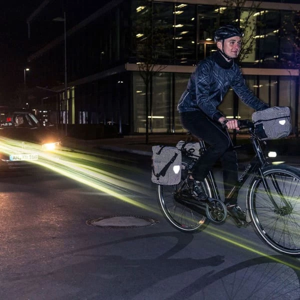 Elles possèdent évidemment des éléments réfléchissants mais elles sont à elles-seules d’immenses réflecteurs. La construction en toile Cordura enduite PU est étanche à l’eau et entièrement tissée avec du fil capable de réfléchir la lumière, aussi bien sur les parties fluo que sur les parties noires.