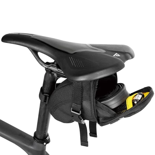 La sacoche AERO WEDGE PACK (STRAPS) SMALL de chez TOPEAK est une sacoche qui se fixe sous la selle de votre vélo.